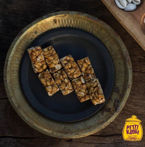 Out of stockkovilpatti Kadalai Mittai is a popular traditional sweet from Tamil Nadu, a southern state in India.It is made using roasted peanuts, jaggery, and cardamom powder. The mixture is then flattened and cut into small pieces or squares. Ingredients of kovilpatti kadalai mittai Roasted Peanuts, Cardamom, Dried Ginger, Jaggery, Added Glucose and Water